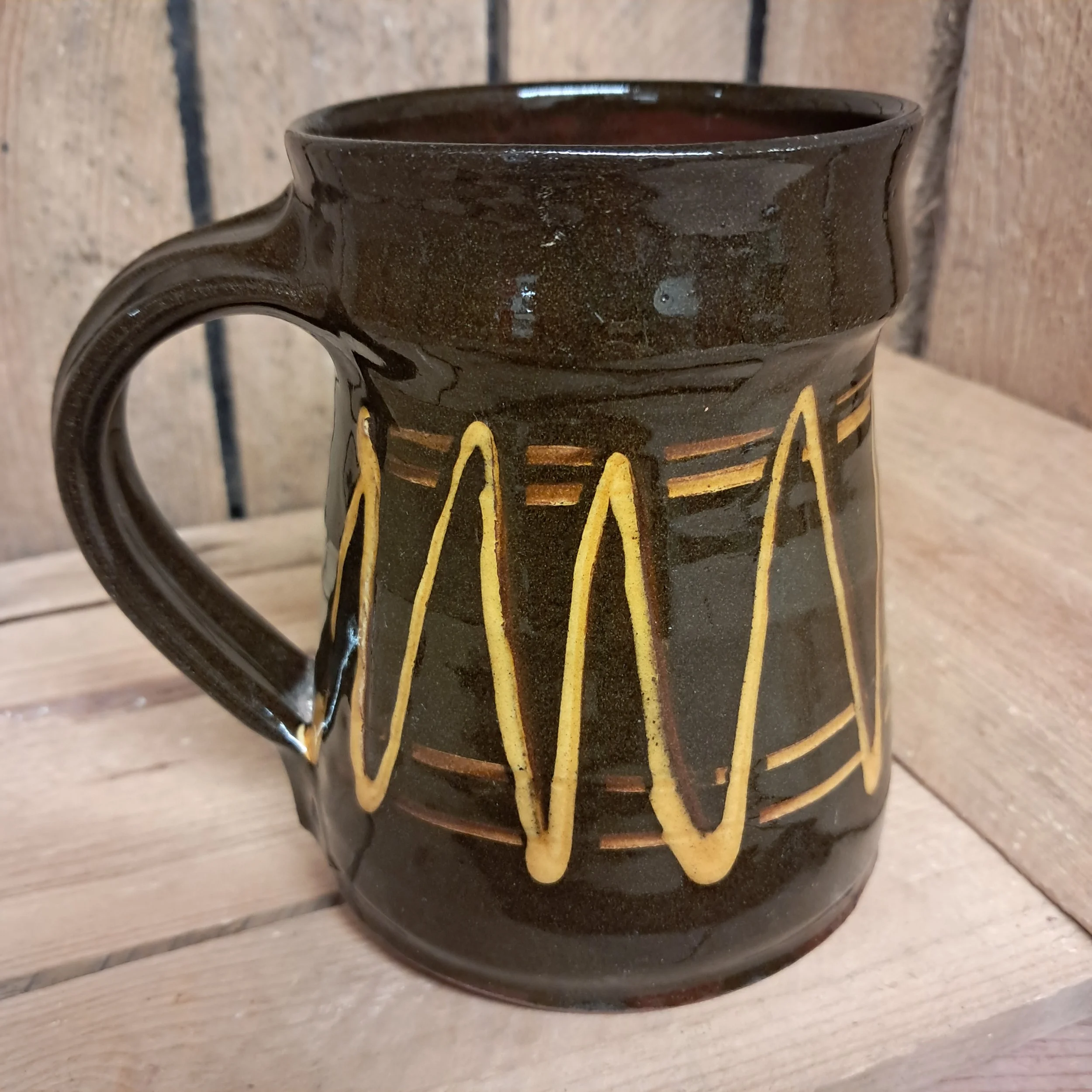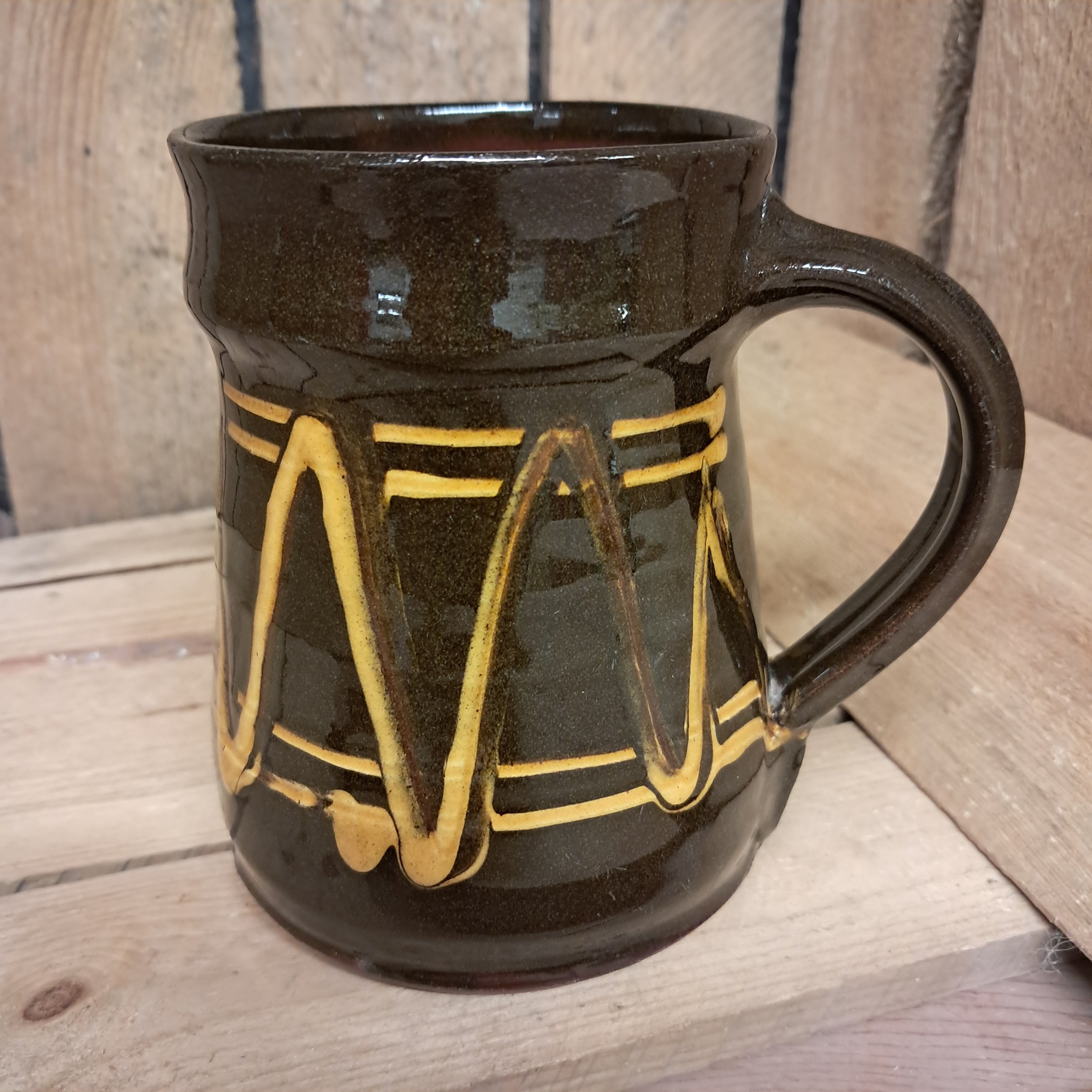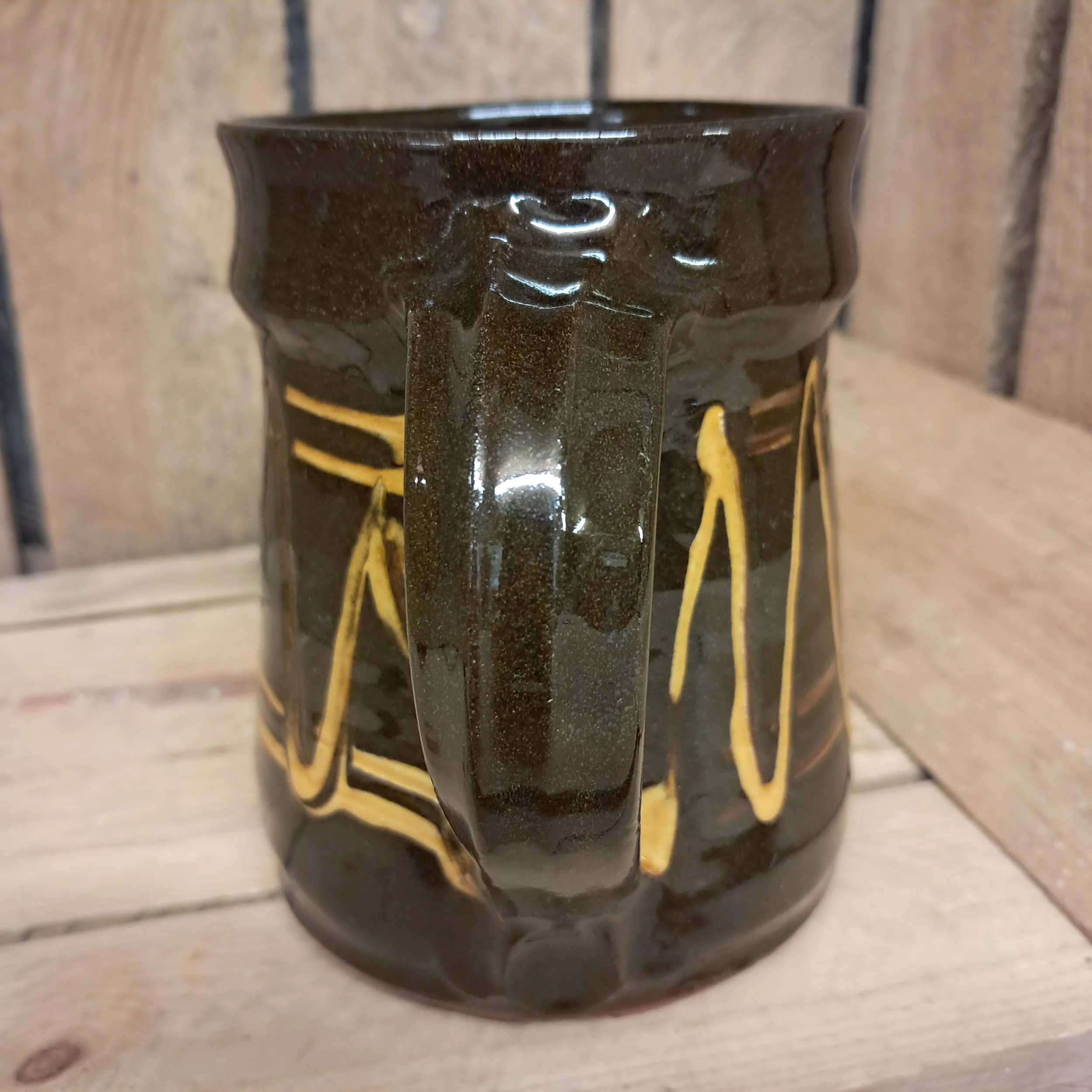 Image 1 of 3 Image 2 of 3 Image 3 of 3 Small Tankard - 12cm tall. £35.00 Small tankard - 12cm tall.Black and amber slip trailed decoration. Add To Cart Added! Small tankard - 12cm tall.Black and amber slip trailed decoration.