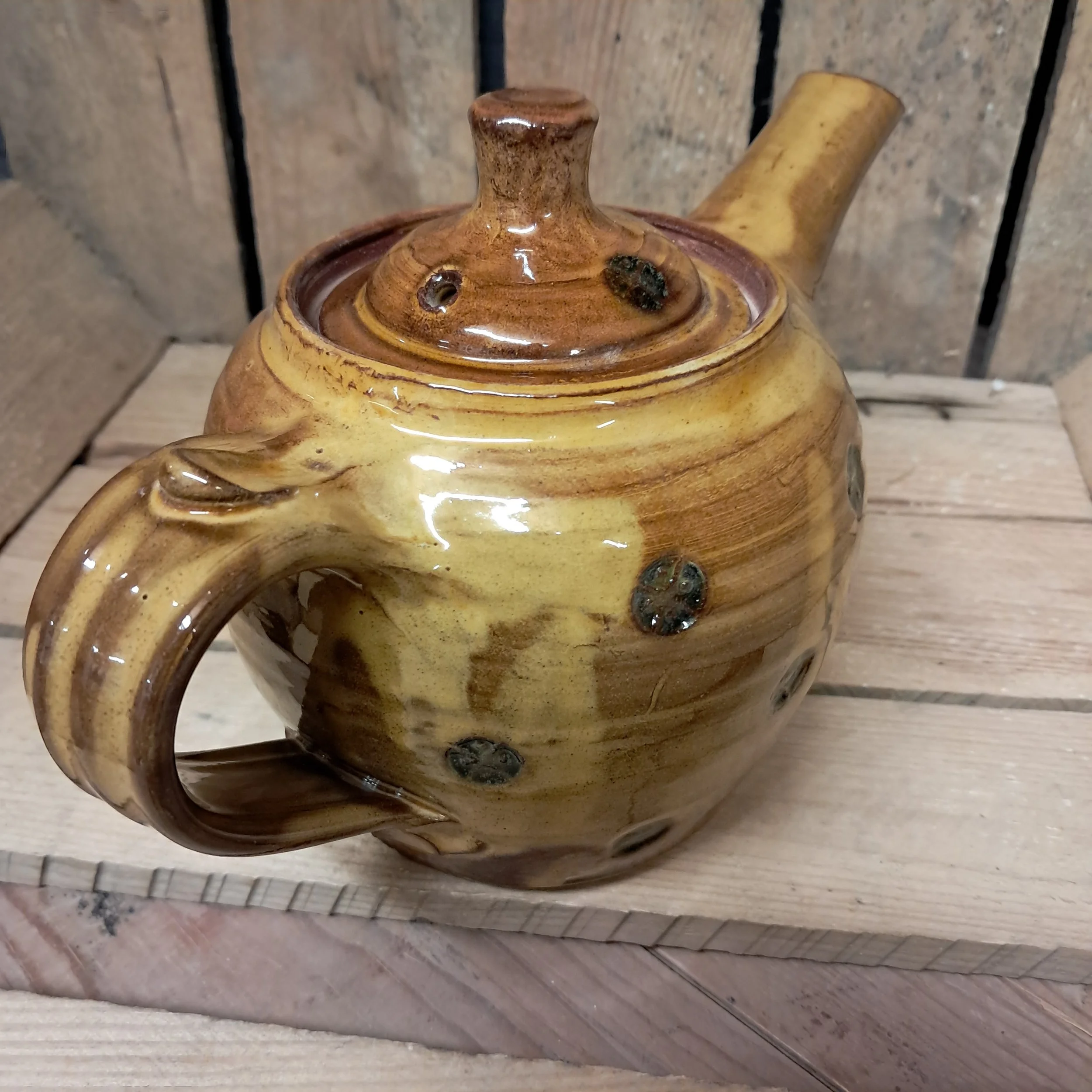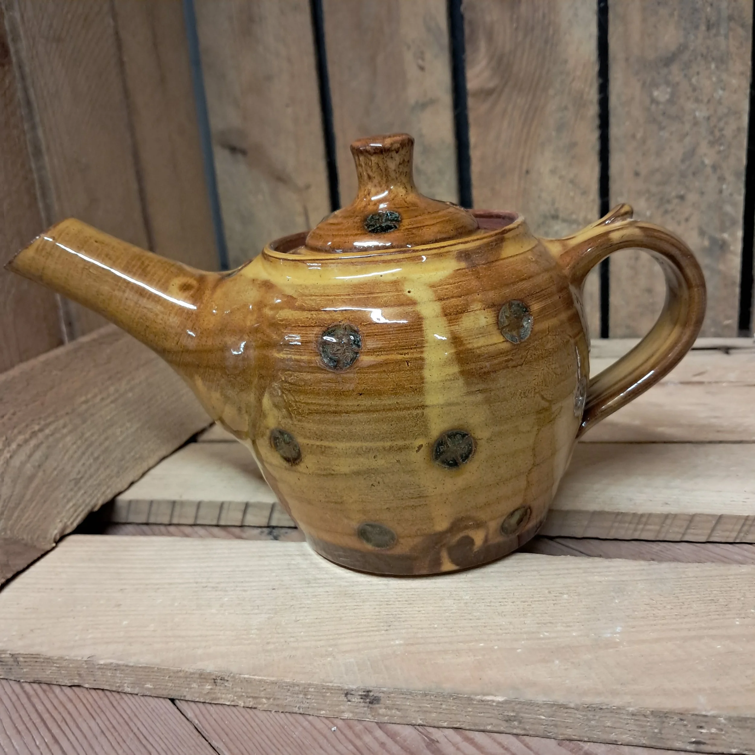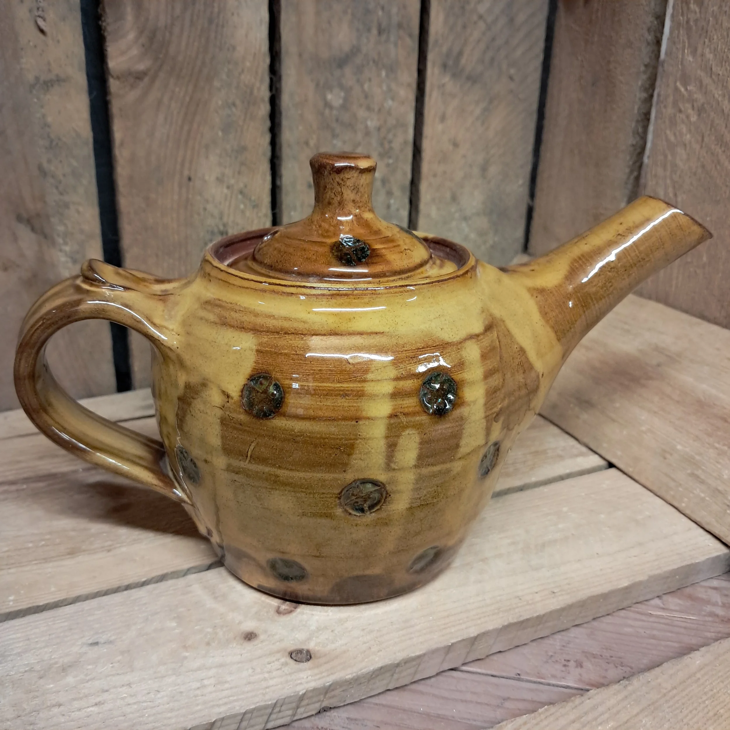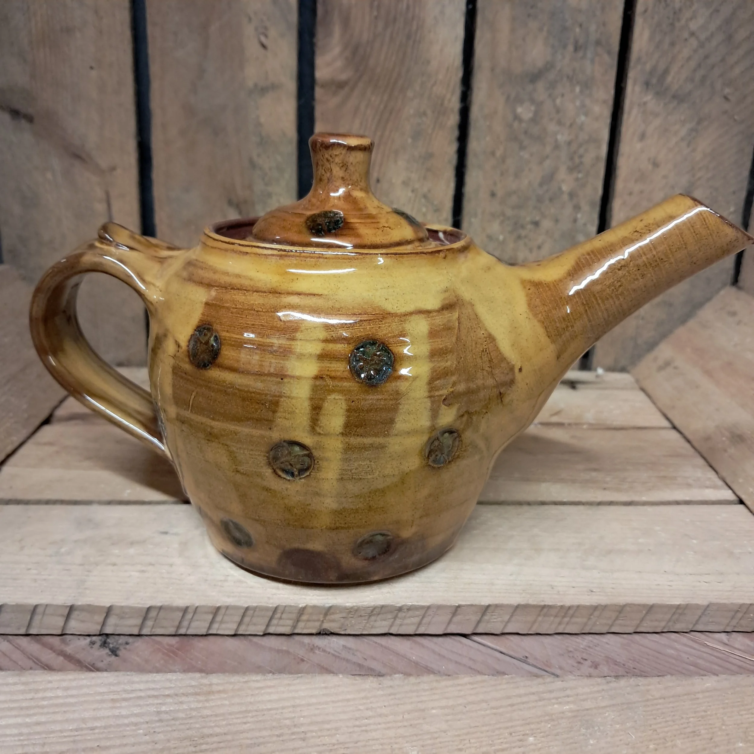 The slip is a bit thin and has ran in dribbles a little too much for me. Otherwise it’s a fully functioning teapot that holds 3/4 of a pint.