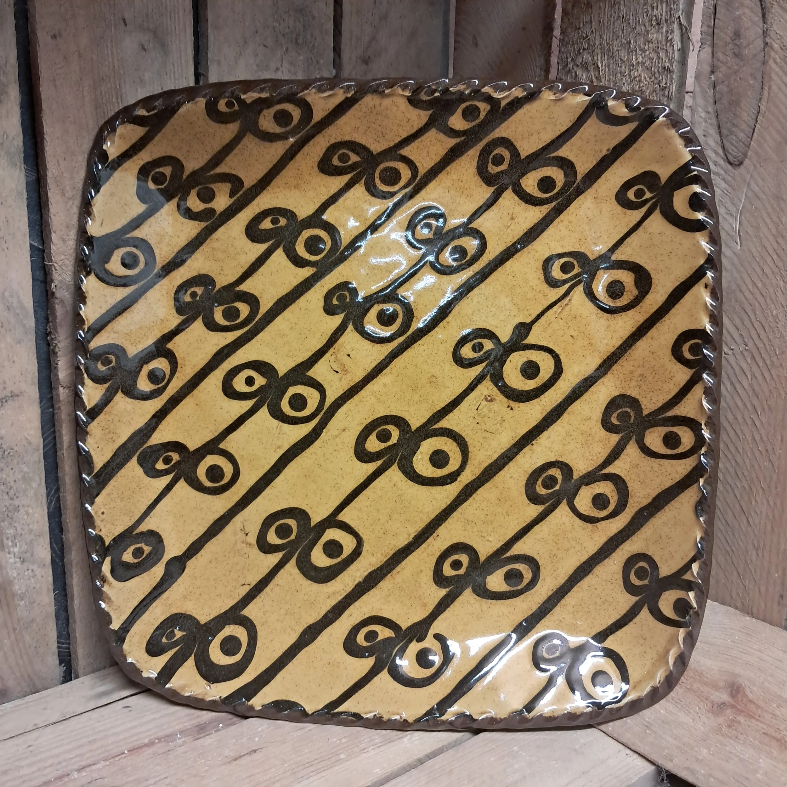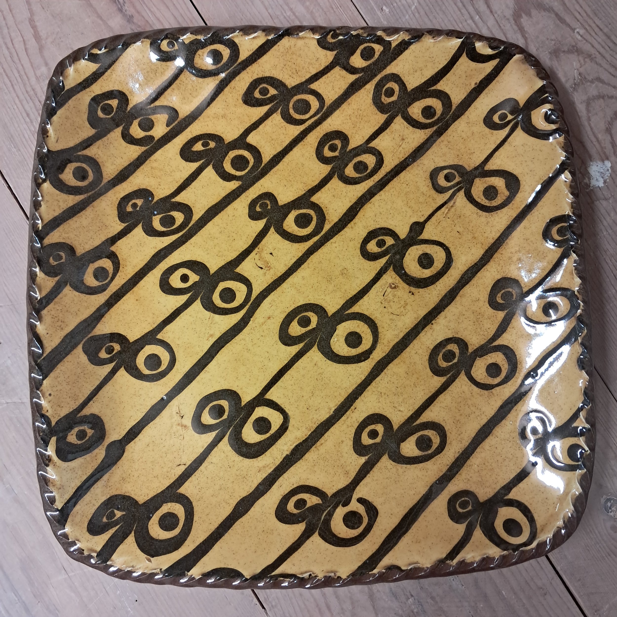 Black and amber slip trailed decoration