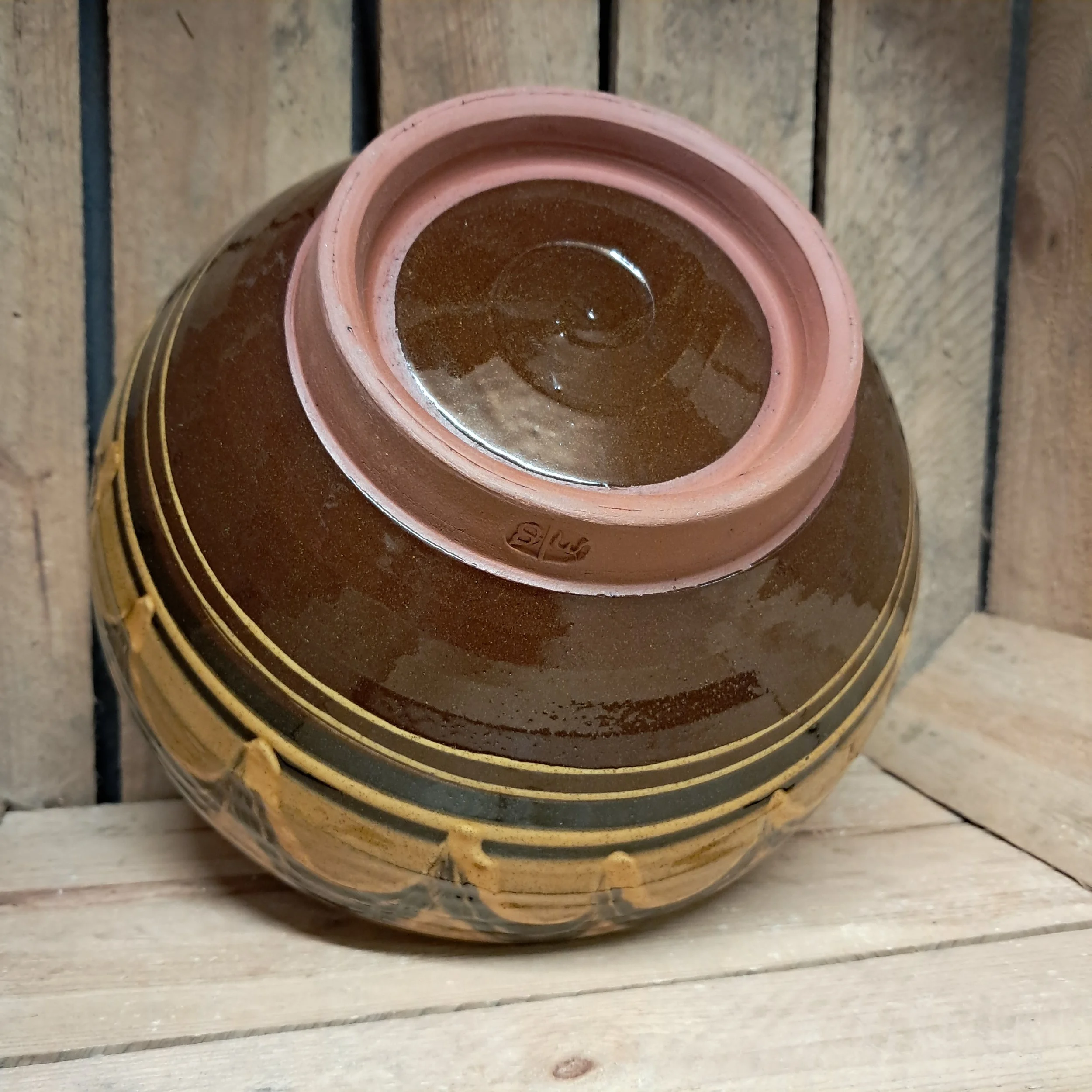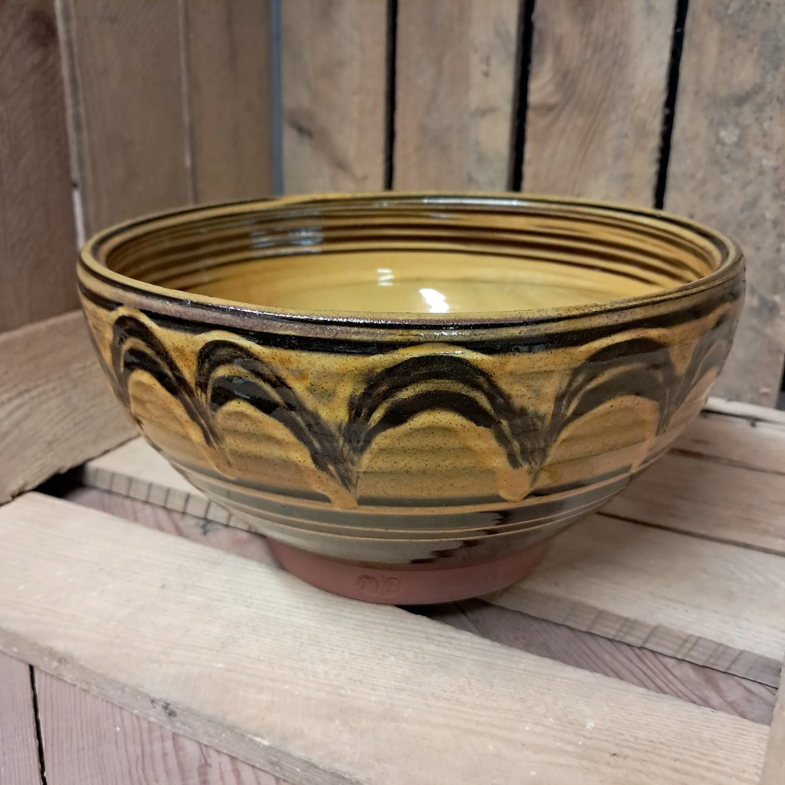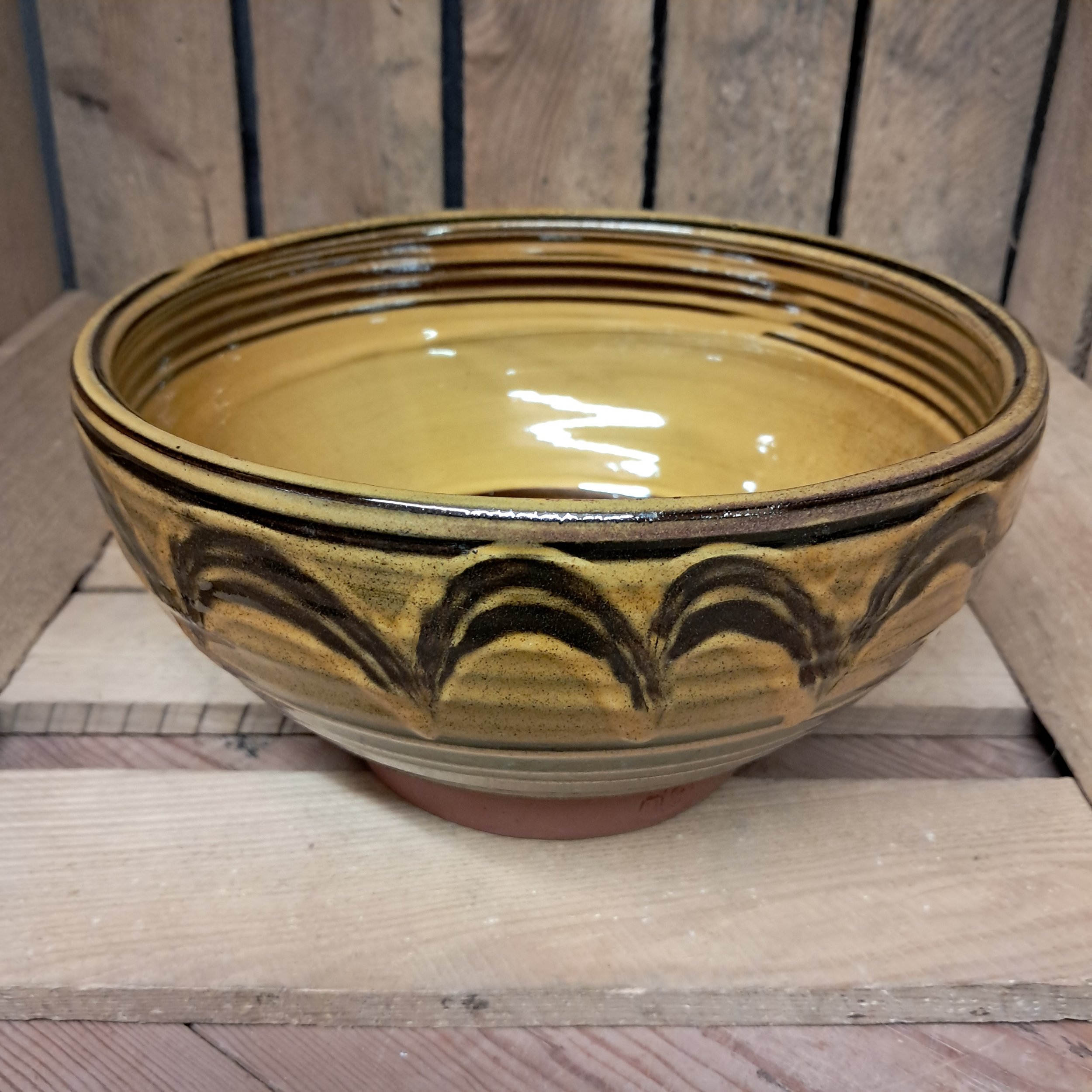 Image 1 of 4 Image 2 of 4 Image 3 of 4 Image 4 of 4 Serving Bowl - 20cm x 11cm. £75.00 Serving bowl - 20cm x 11cm.Combed decoration in an amber glaze. Add To Cart Added! Serving bowl - 20cm x 11cm.Combed decoration in an amber glaze.