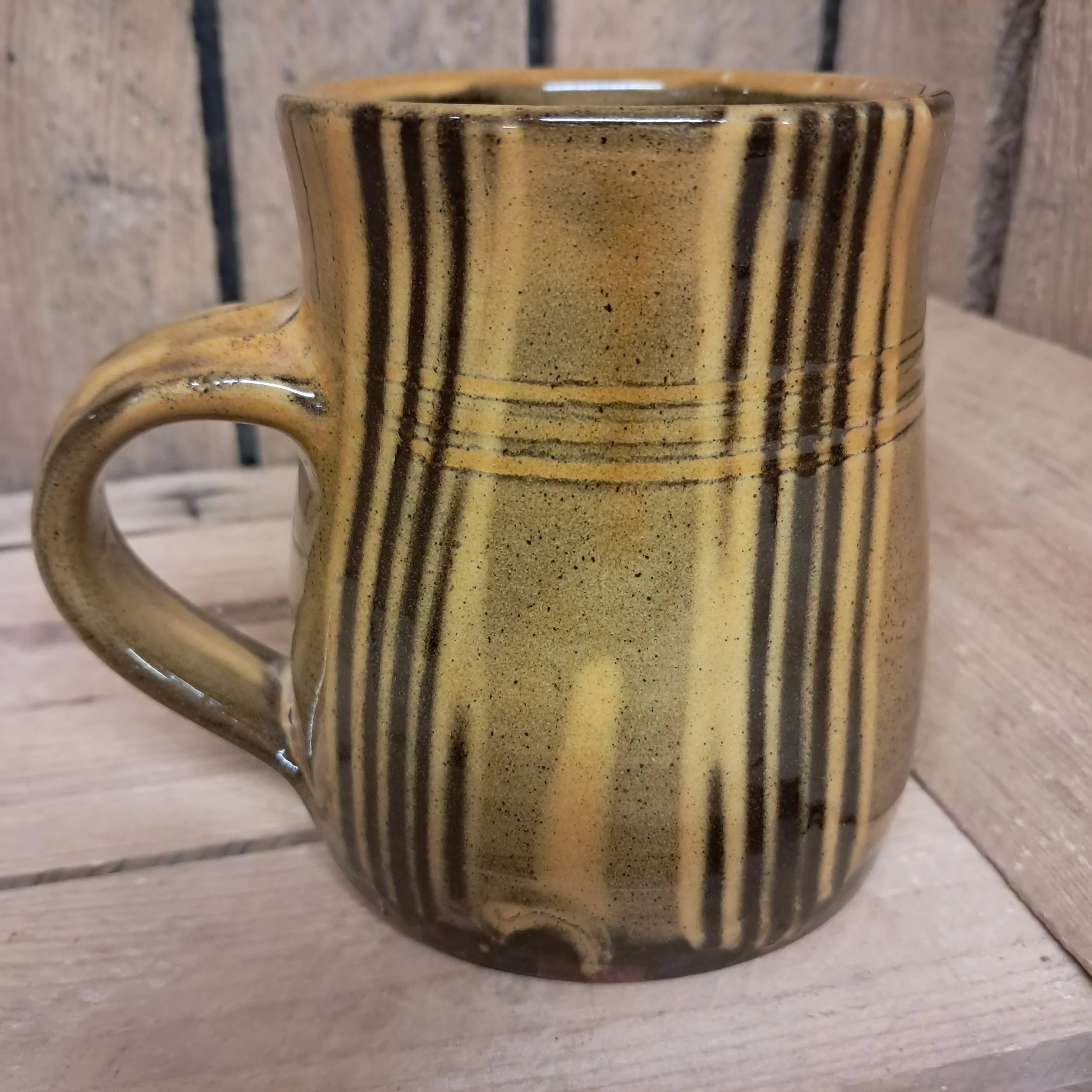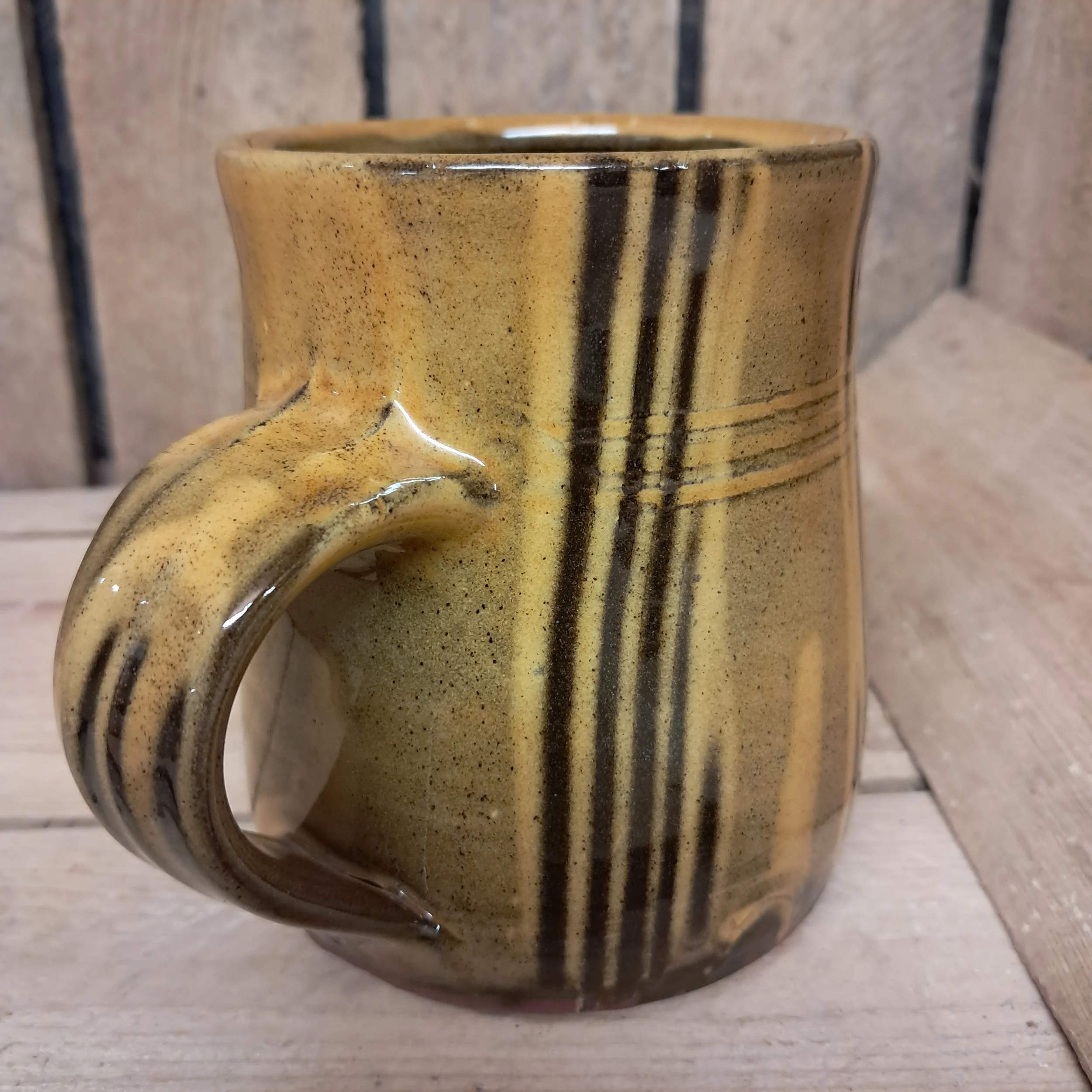 Image 1 of 3 Image 2 of 3 Image 3 of 3 Mug Amber Stripes #1 - 10cm tall. £30.00 Mug - 10cm.Amber stripes. Add To Cart Added! Mug - 10cm.Amber stripes.