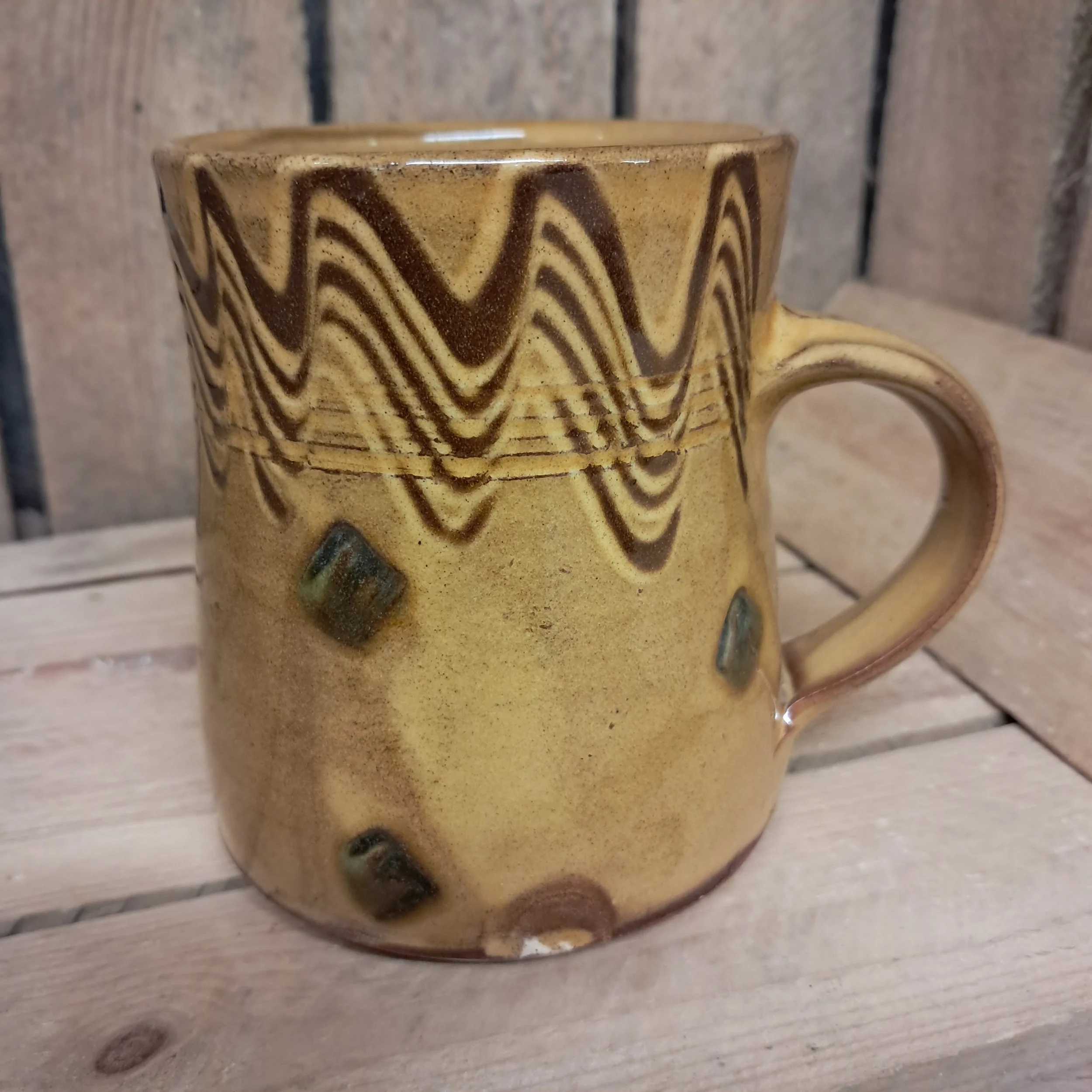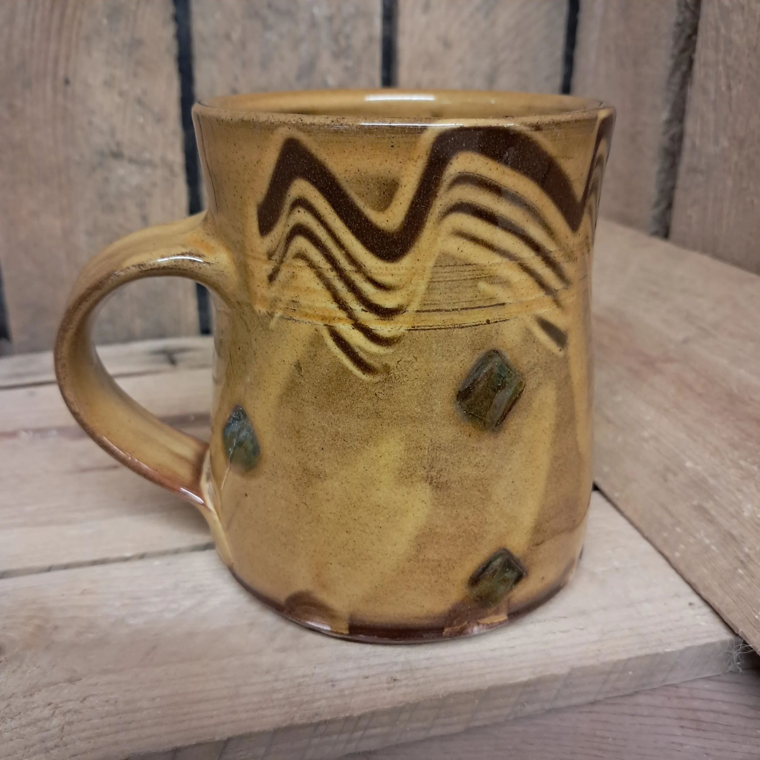 Image 1 of 3 Image 2 of 3 Image 3 of 3 Mug Amber #2 - 10cm tall. £30.00 Mug - 10cm.Amber with combed and stamped decoration Add To Cart Added! Mug - 10cm.Amber with combed and stamped decoration