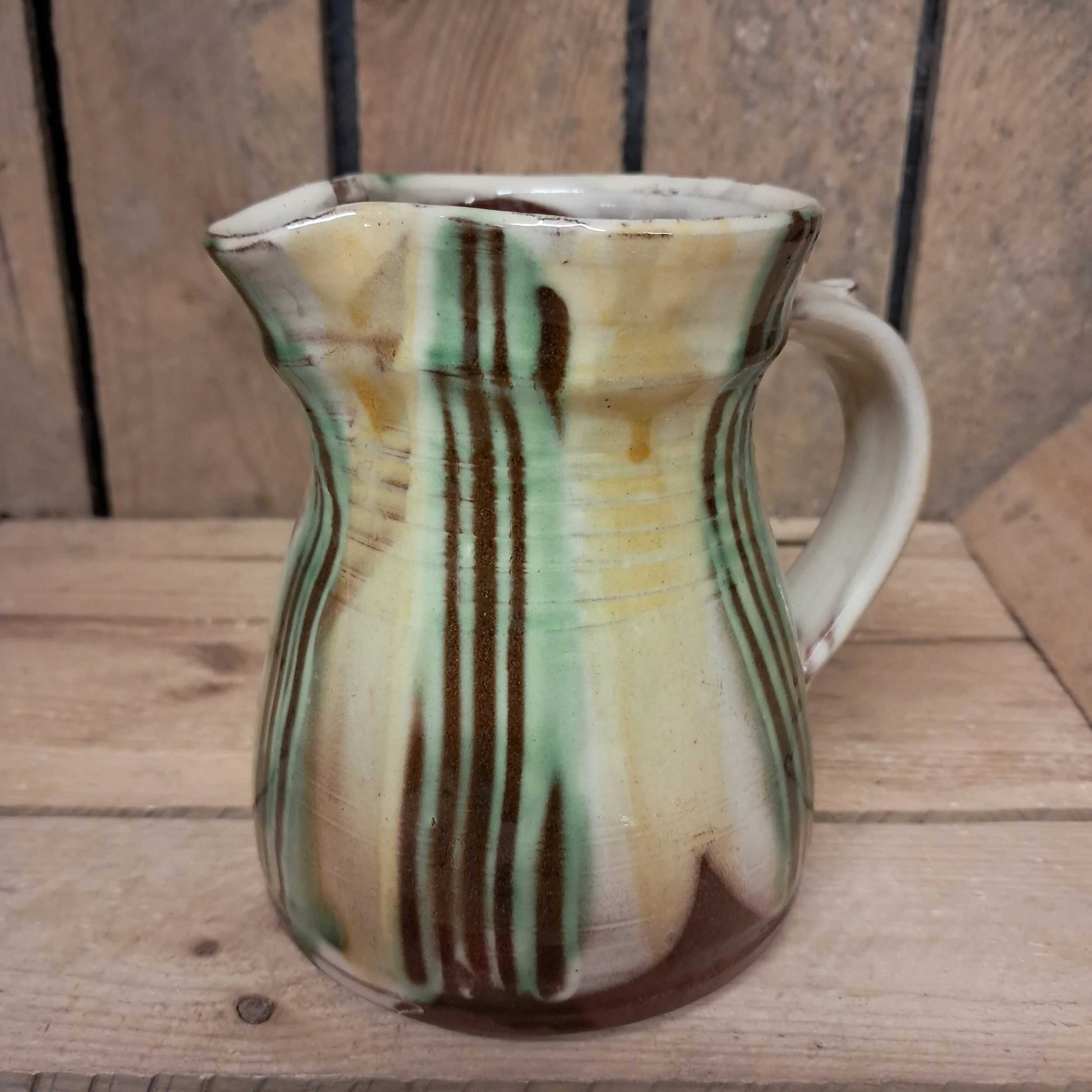 Image 1 of 3 Image 2 of 3 Image 3 of 3 Tapered Jug - 11cm tall. £40.00 Tapered Jug - 11cm tall.Combed stripes in cream, green and amber. Add To Cart Added! Tapered Jug - 11cm tall.Combed stripes in cream, green and amber.