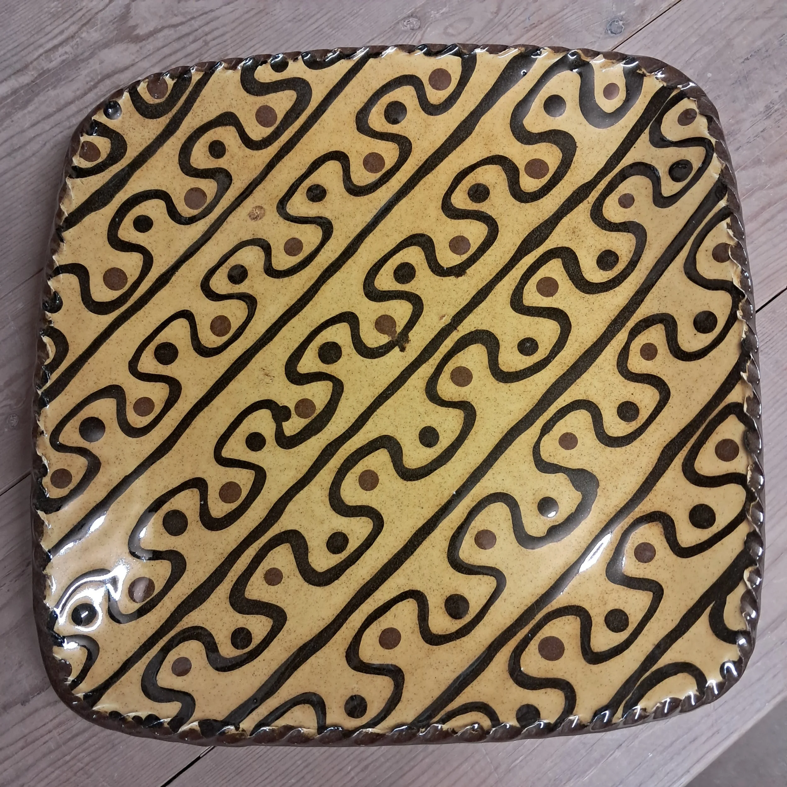 Image 1 of 3 Image 2 of 3 Image 3 of 3 Square Dish - 30cm x 30cm. £75.00 Square dish - 30cm x 30cm x 3cm.Black and amber slip trailed decoration. Add To Cart Added! Square dish - 30cm x 30cm x 3cm.Black and amber slip trailed decoration.