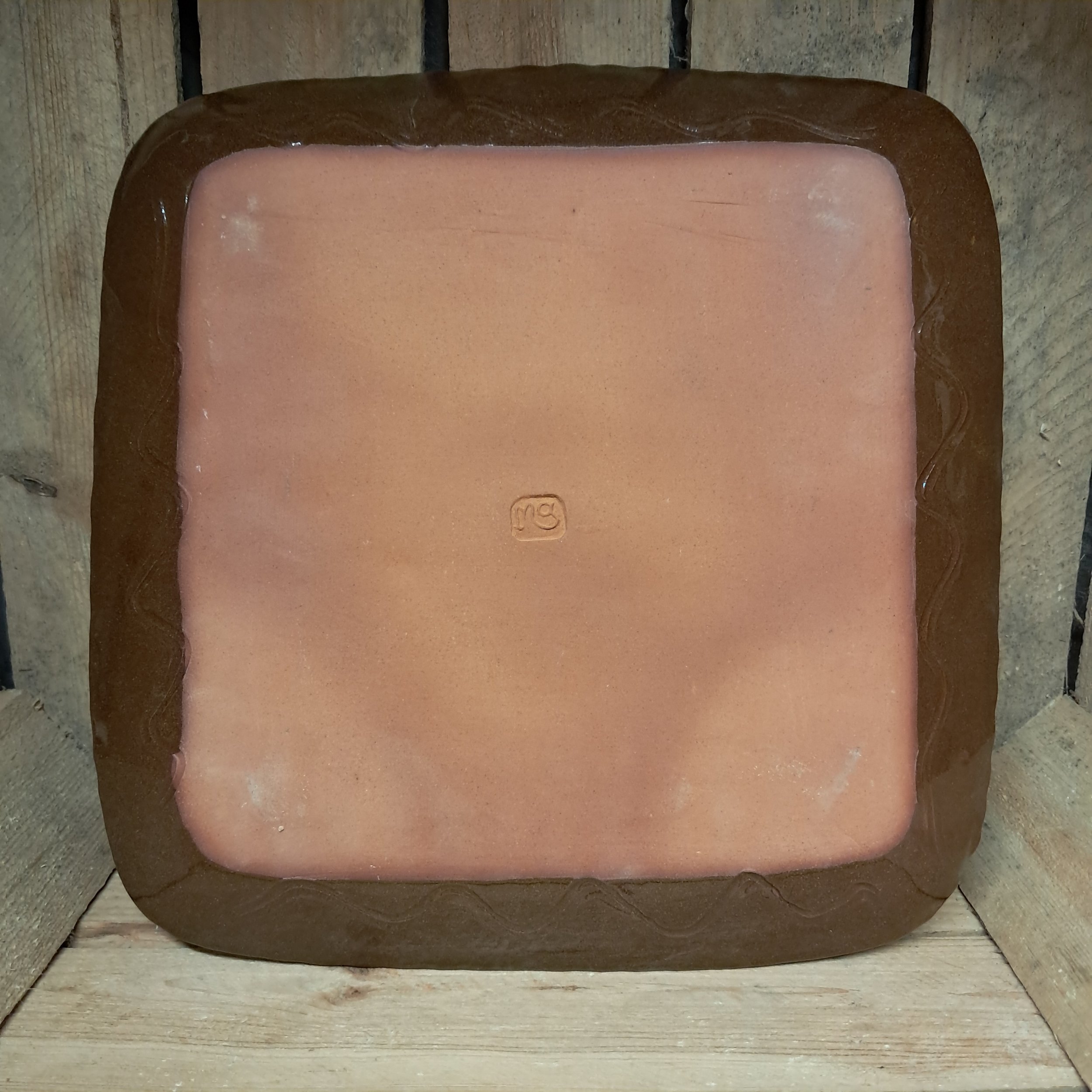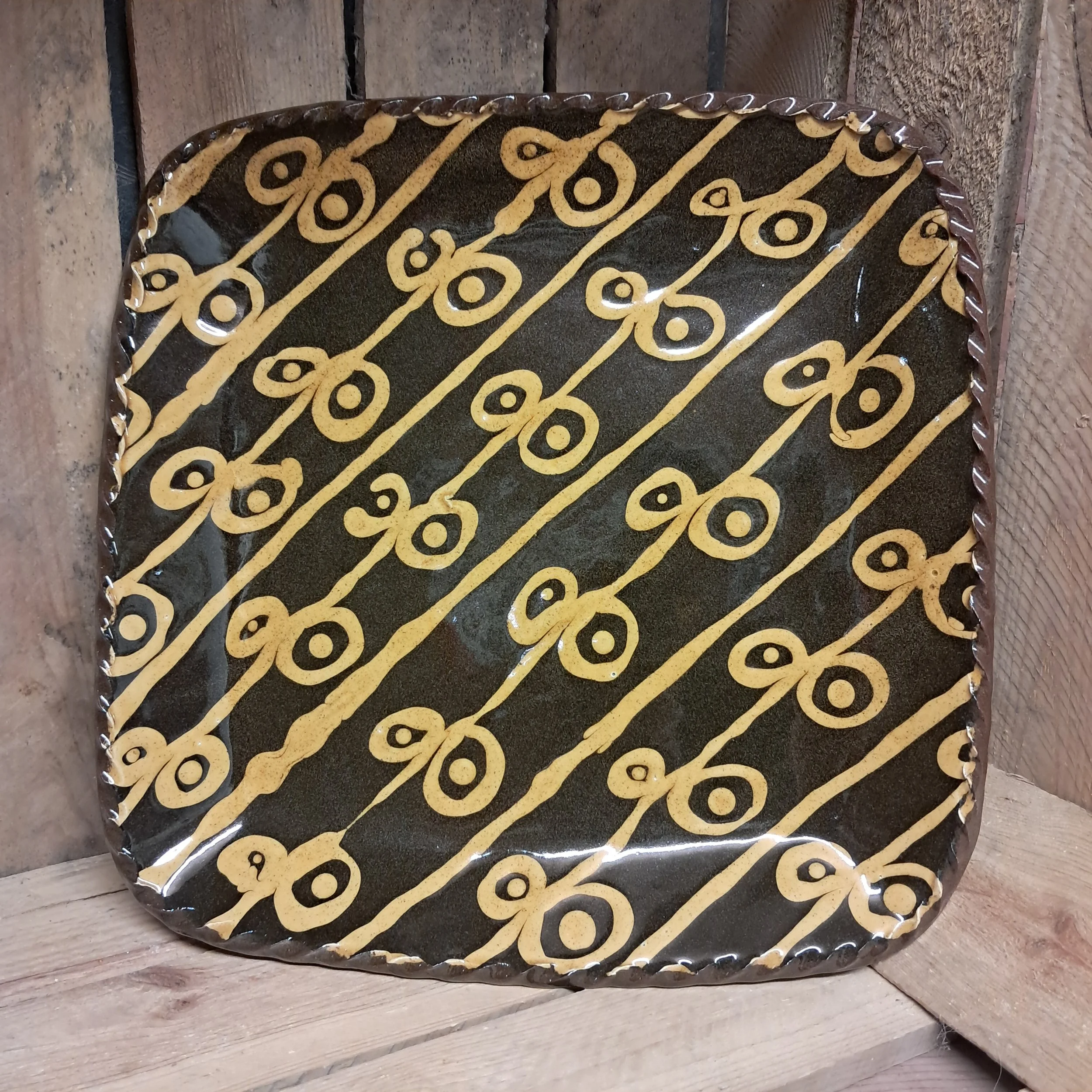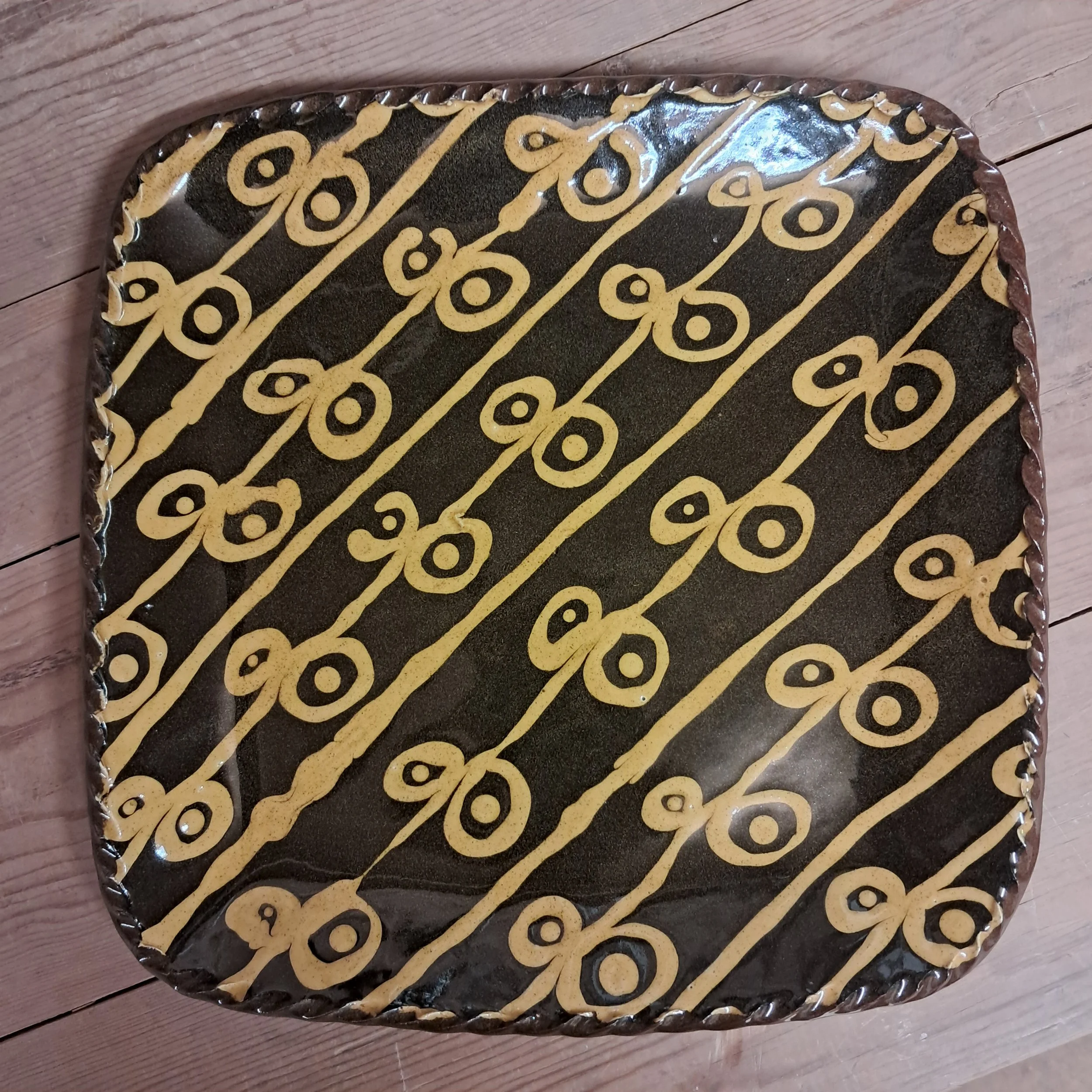 Image 1 of 3 Image 2 of 3 Image 3 of 3 Square Dish - 30cm x 30cm. £75.00 Square dish - 30cm x 30cm x 3cm.Black and amber slip trailed decoration Add To Cart Added! Square dish - 30cm x 30cm x 3cm.Black and amber slip trailed decoration