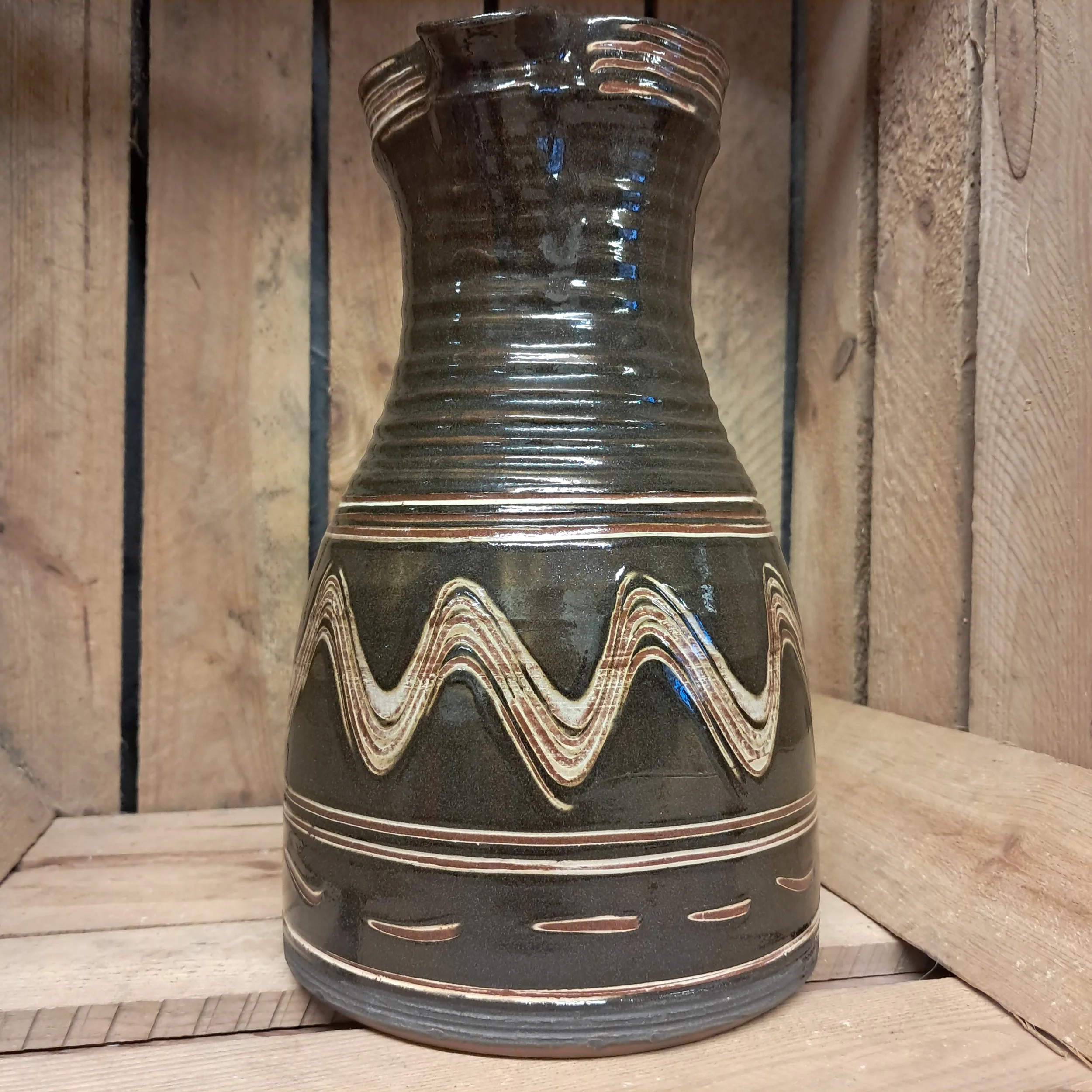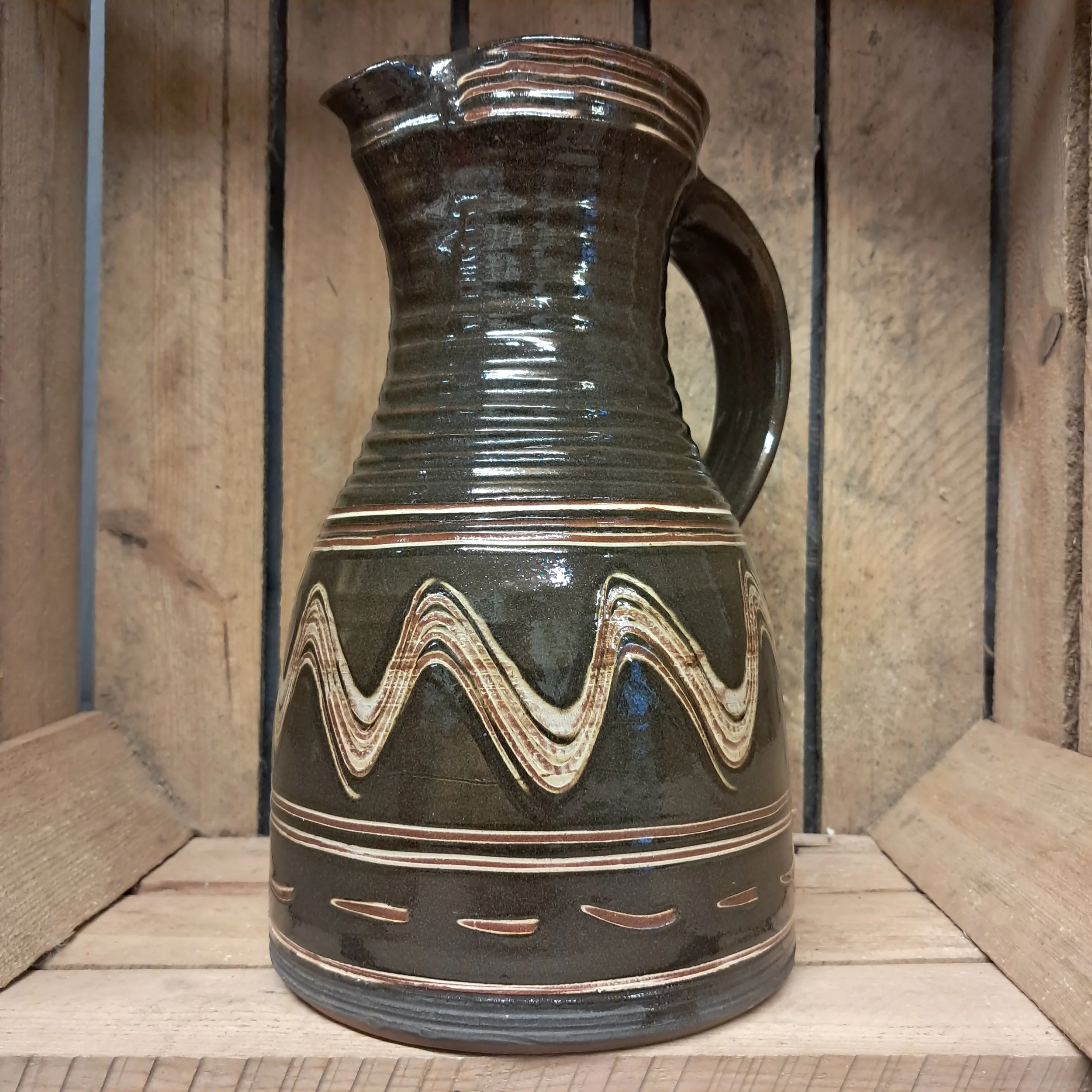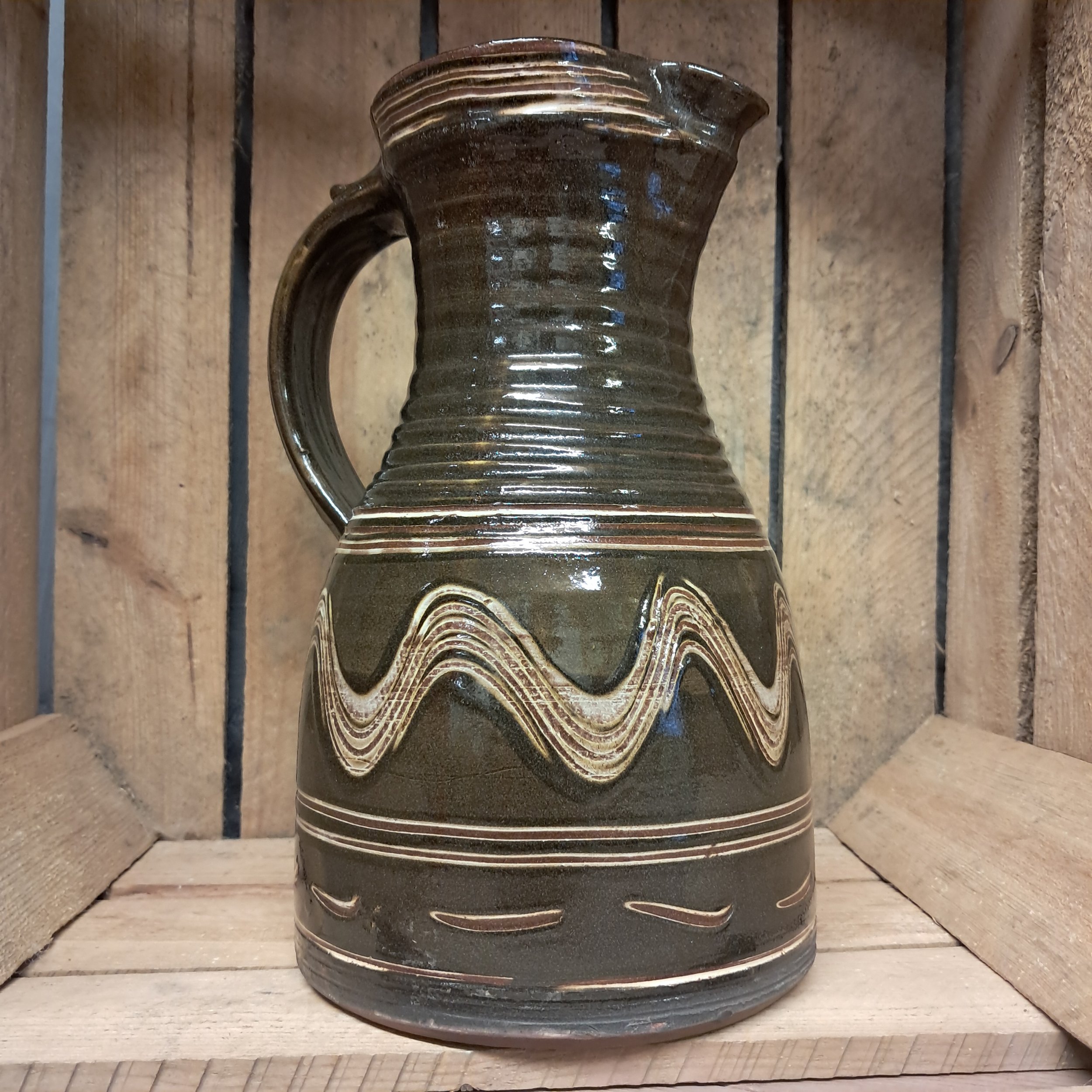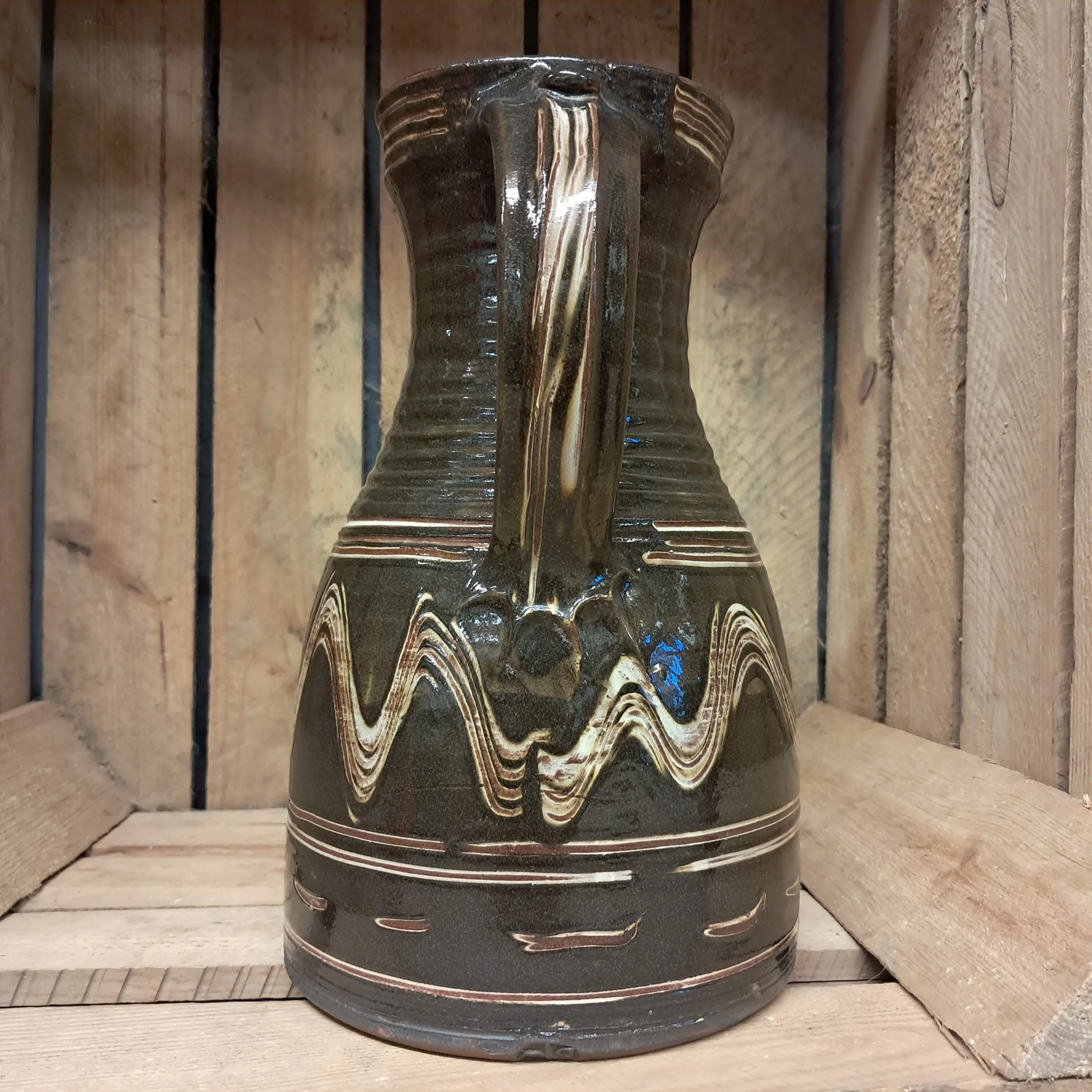 Image 1 of 4 Image 2 of 4 Image 3 of 4 Image 4 of 4 Jug - 26cm tall. £145.00 Jug - 26cm tall.Black and cream combed decoration.Taperedjug showing a little influence from medieval pottery. Add To Cart Added! Jug - 26cm tall.Black and cream combed decoration.Taperedjug showing a little influence from medieval pottery.